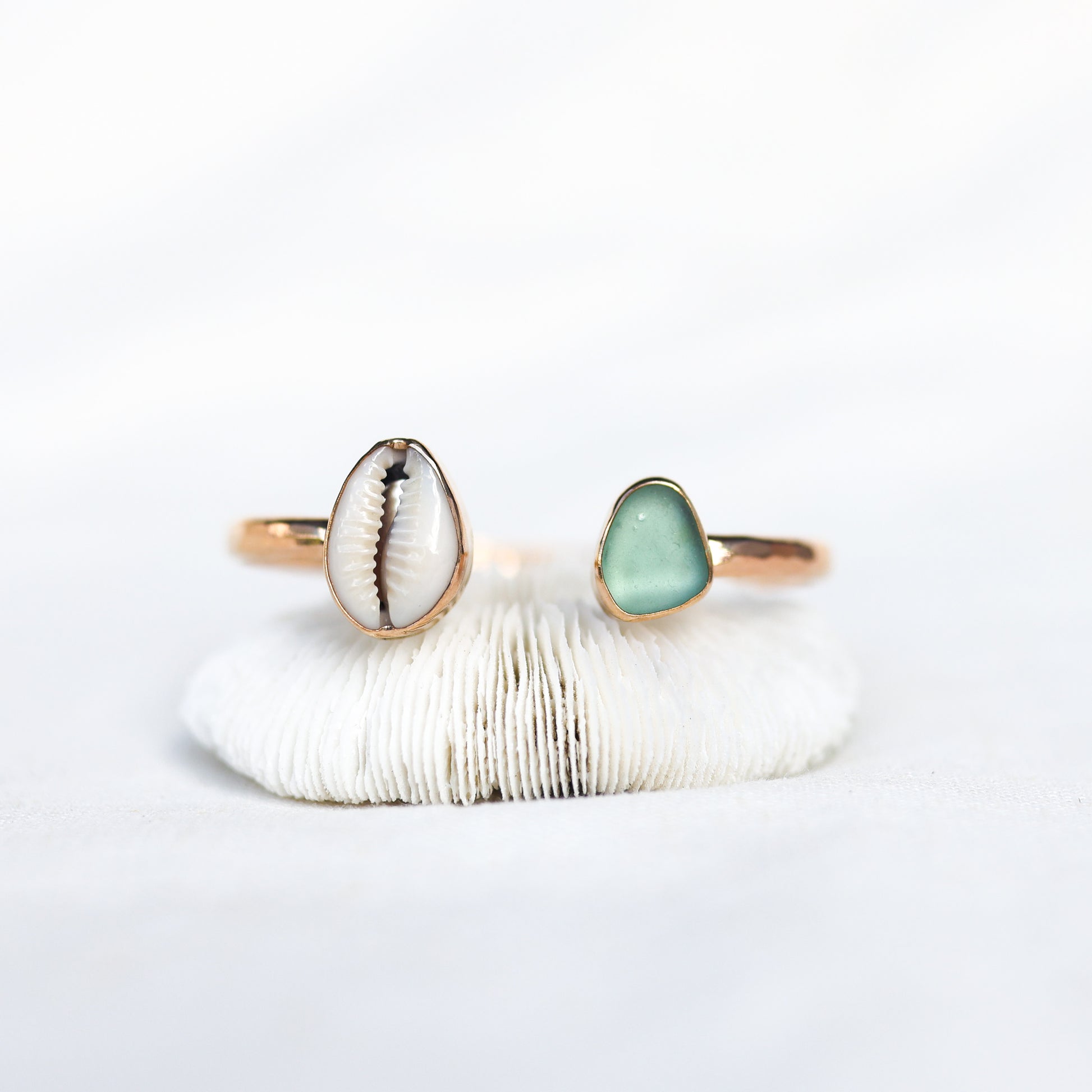 Gold Cowrie and Sea Glass Cuff