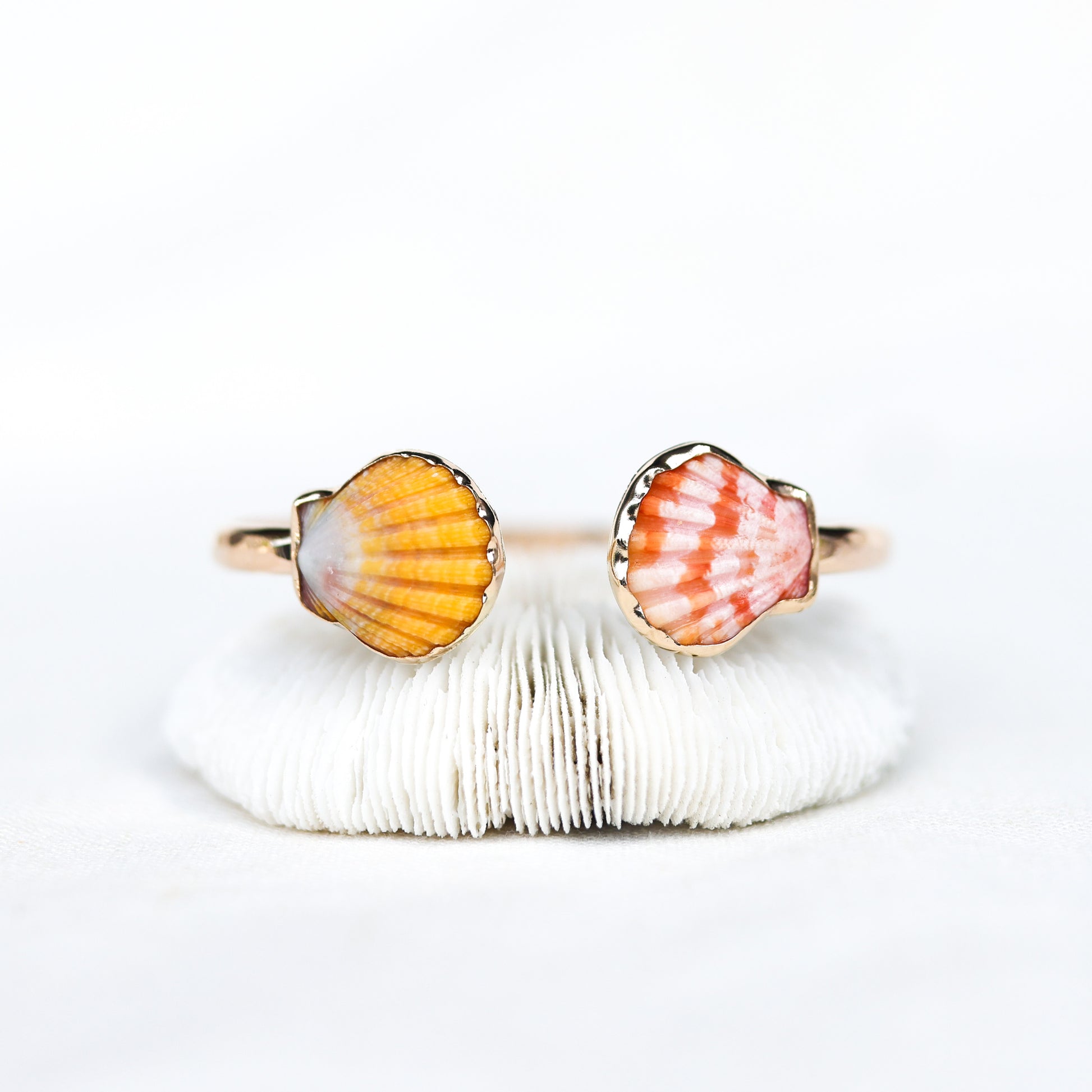 Sunrise shells are endemic to Hawaii, meaning they are only found in the waters surrounding the Hawaiian islands. Each shell is totally unique and so the setting has been made to fit this particular shell.