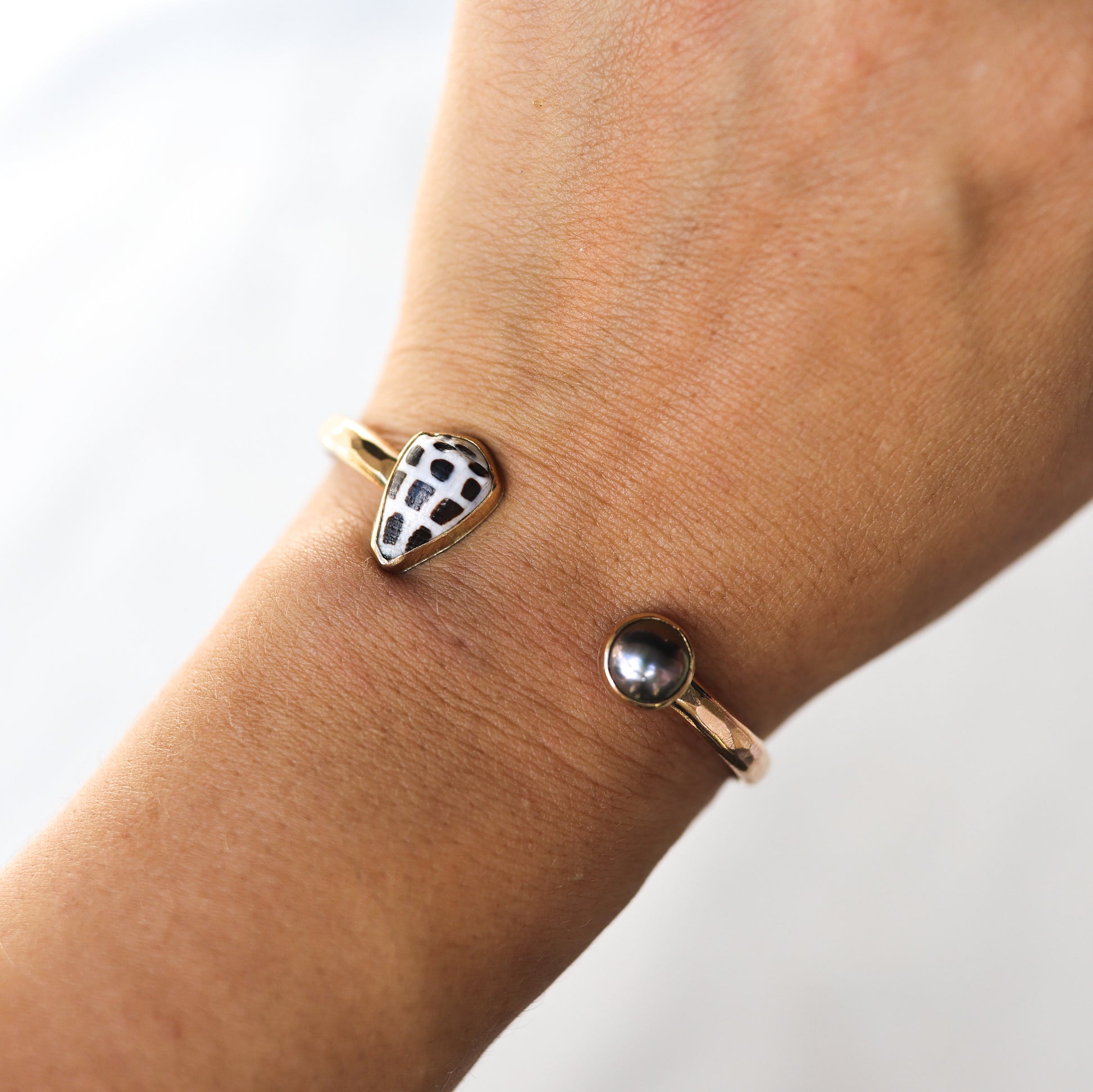 Gold Hebrew Cone and Tahitian Pearl Cuff