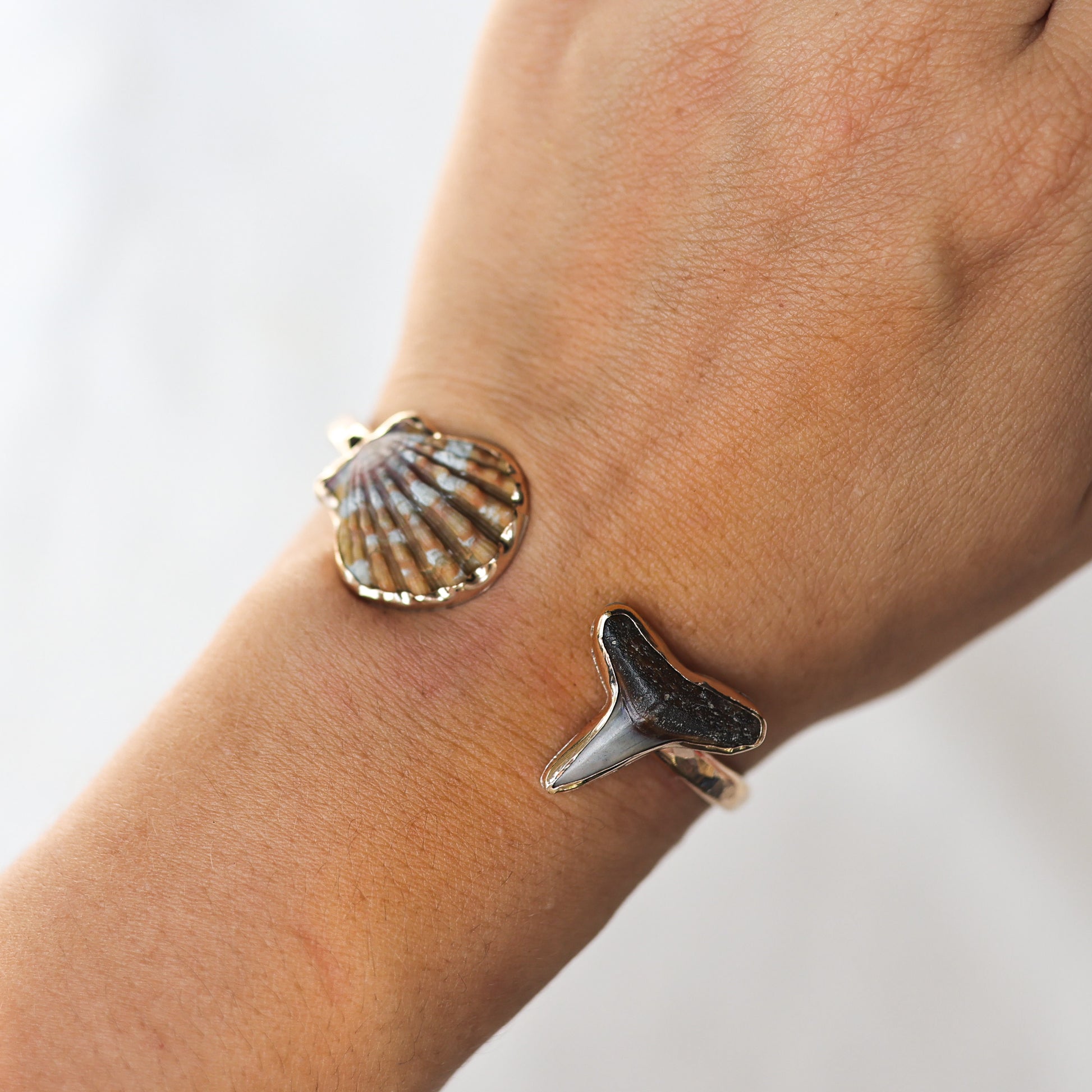 Gold Sunrise Shell and Shark Tooth Cuff