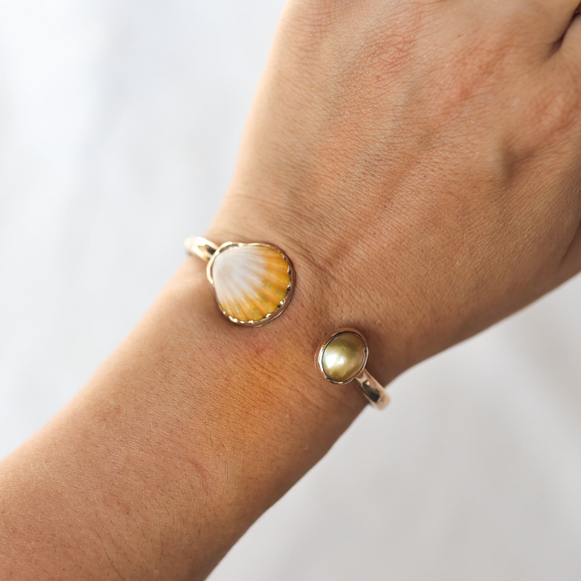 Gold Sunrise Shell and South Sea Pearl Cuff