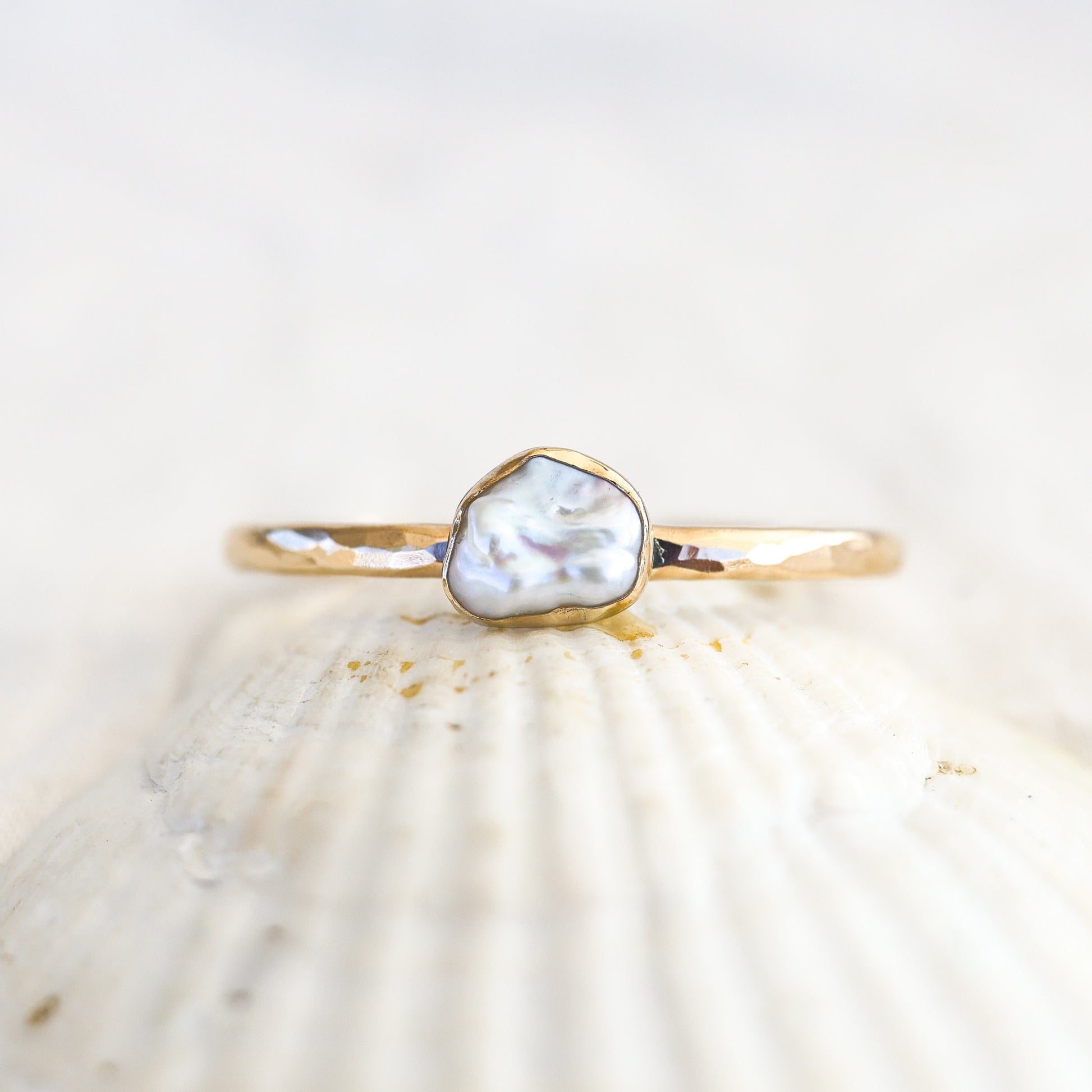 This white Edison pearl has been bezel set in 14k gold fill with a .999 fine silver backplate and a 14k gold fill band.